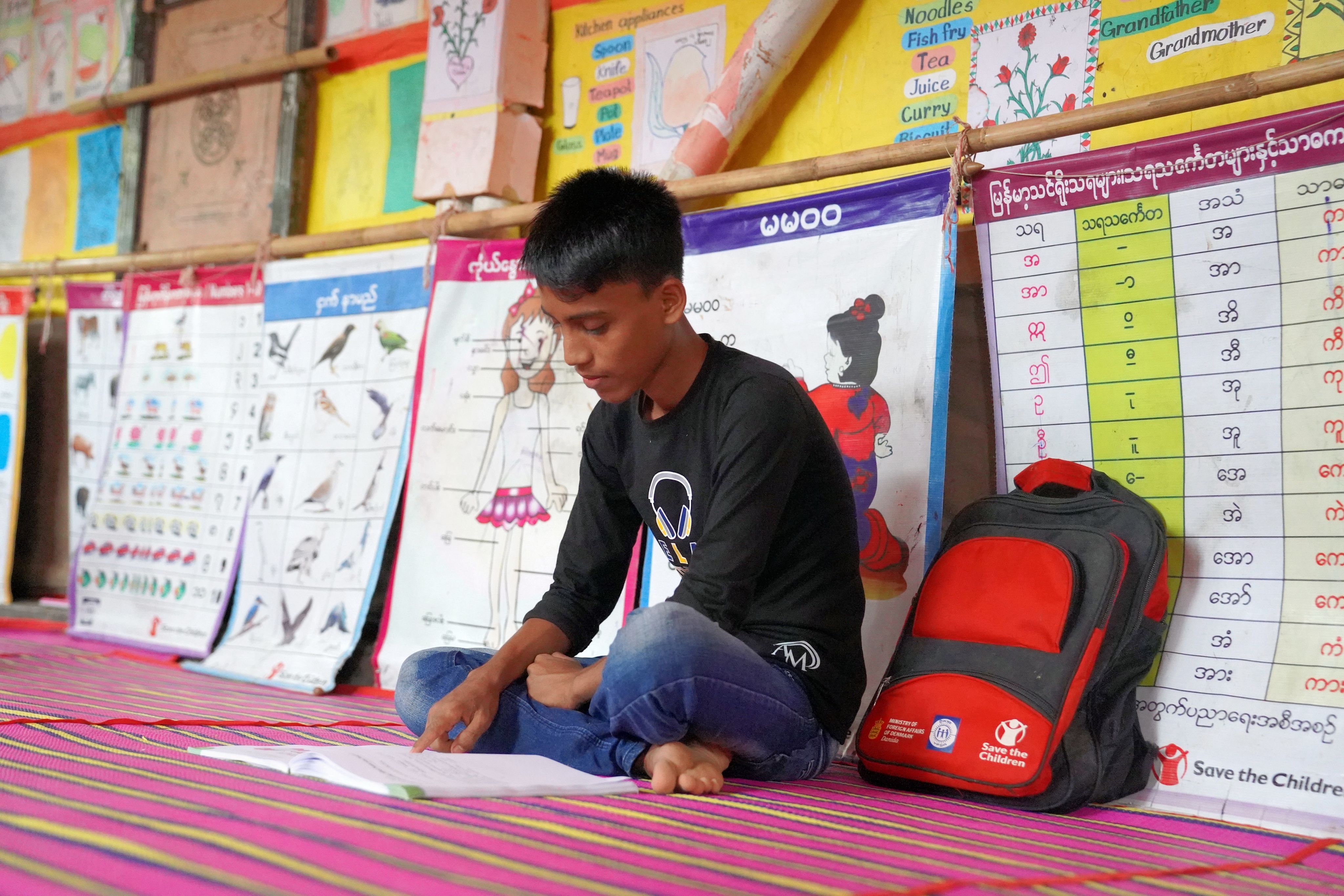 Ayaz*, 15, studying at a Save the Children supported Learning Centre in Cox's Bazar, Bangladesh. Photo: Saddam Husen / Save the Children