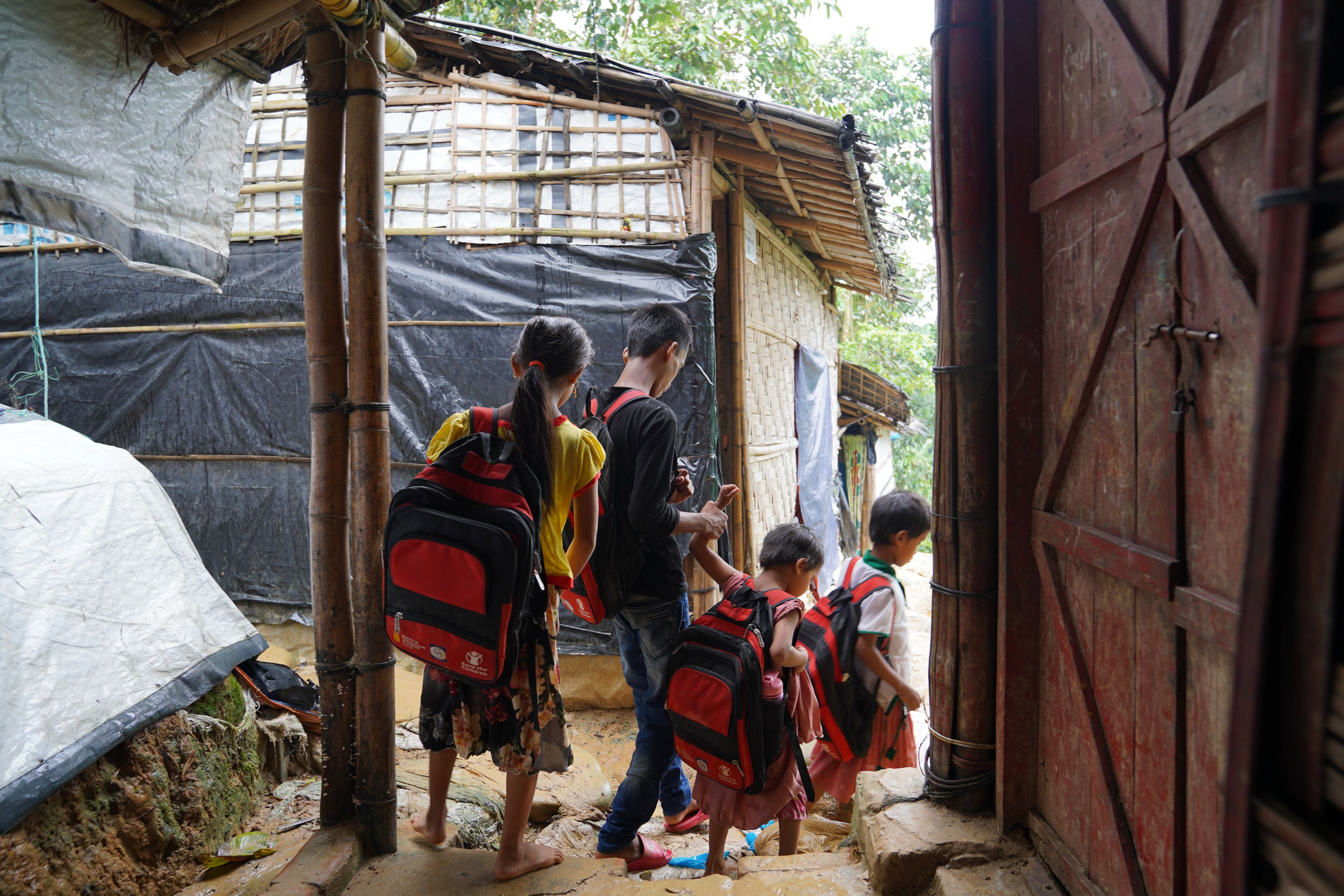 Ayaz*, 15, and his younger siblings walk to a Save the Children supported Learning Centre in Cox's Bazar, Bangladesh. Photo: Saddam Hosen / Save the Children