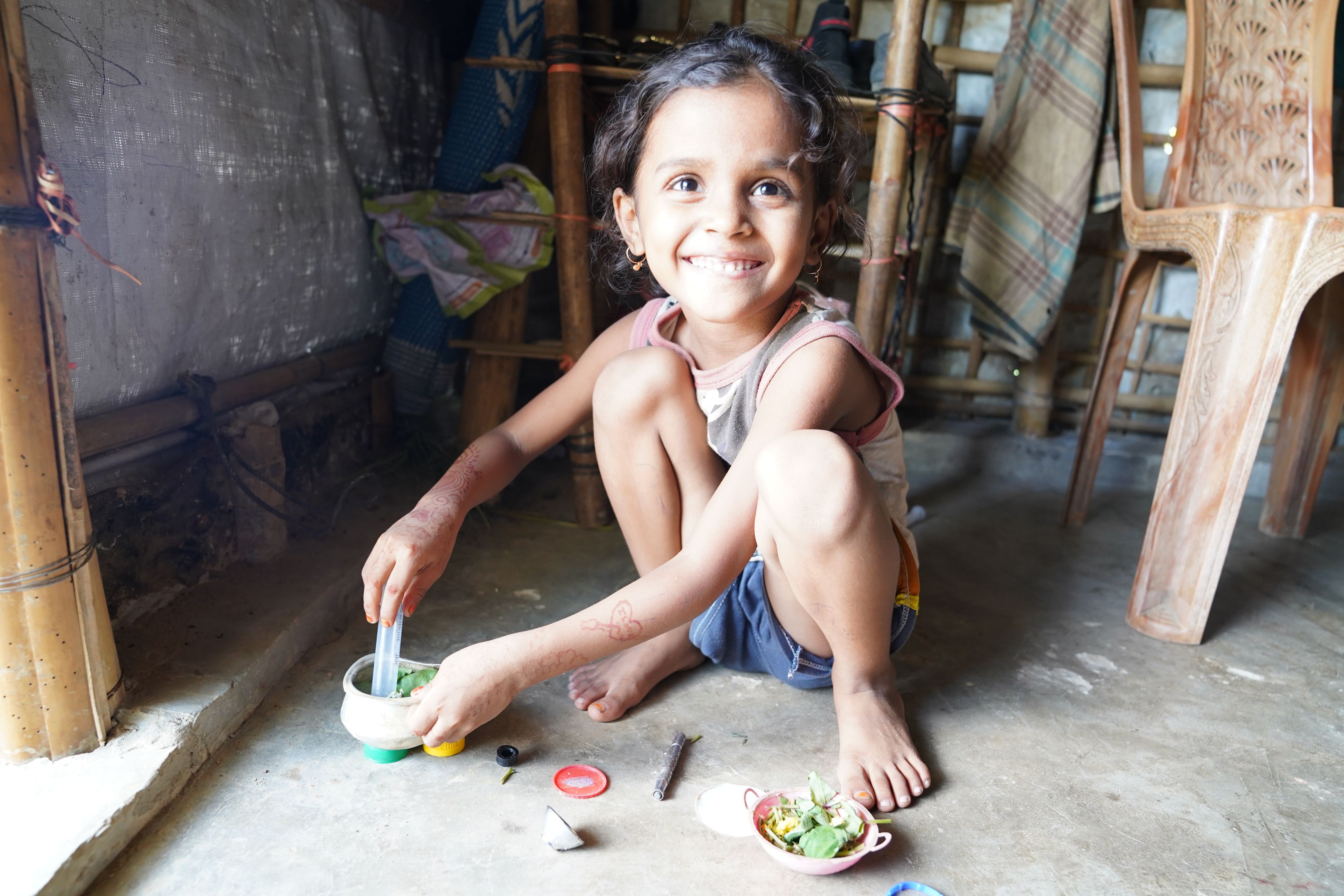 Antora* is five years old. She lives with her four older brothers – including 12-year-old Zia* and 15-year-old Forkan* – as well as her parents in one of the largest refugee camps in the world in Cox’s Bazar in Bangladesh.